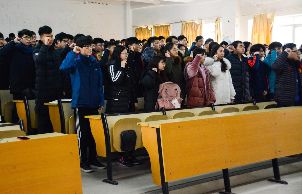 其他年级各班同学也以不同形式召开班会进行了期末考试动员,有些班级还进行了考前复习经验交流活动。(通讯员:李岩 李汀;摄影:张瑞佳 时文哲)