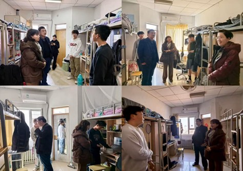 领导详细询问学生考研复试准备、求职就业推进等情况,耐心解答学生学业与职业发展疑问,提醒同学们严守安全底线,营造积极向上的宿舍氛围。