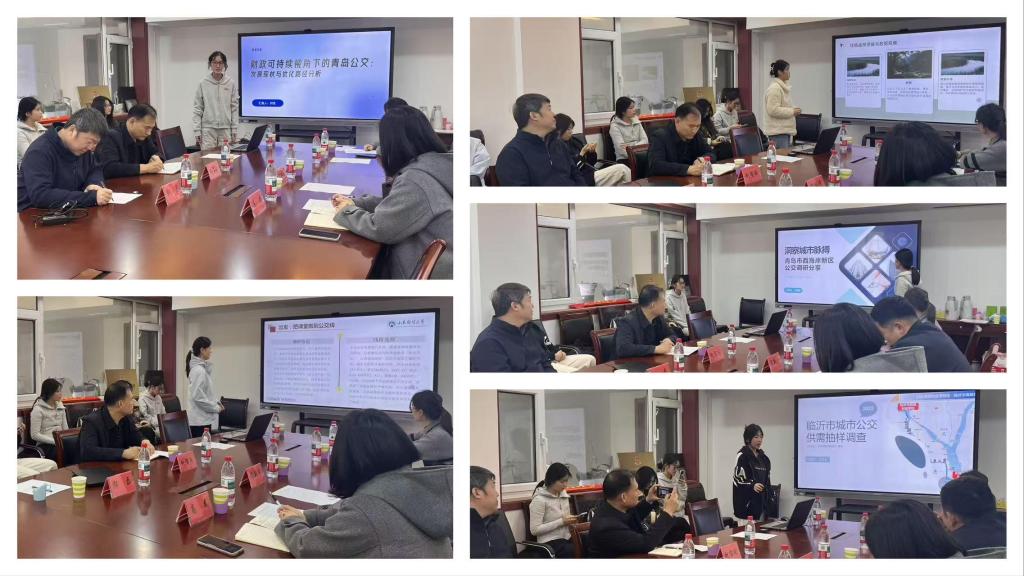 在调研汇报环节,学生代表刘悦、王婧彤、王可玉、王焱、马思涵等5人依次分享了在暑期社会调查中的实践成果。她们围绕济南、青岛、临沂等不同区域公共交通的覆盖状况、市民候车体验等问题,结合详实数据和实地走访情况,提出了优化线路布局、增设便民设施等一系列建议,充分展现了财税学子扎实的调研能力与心系社会发展的责任担当。