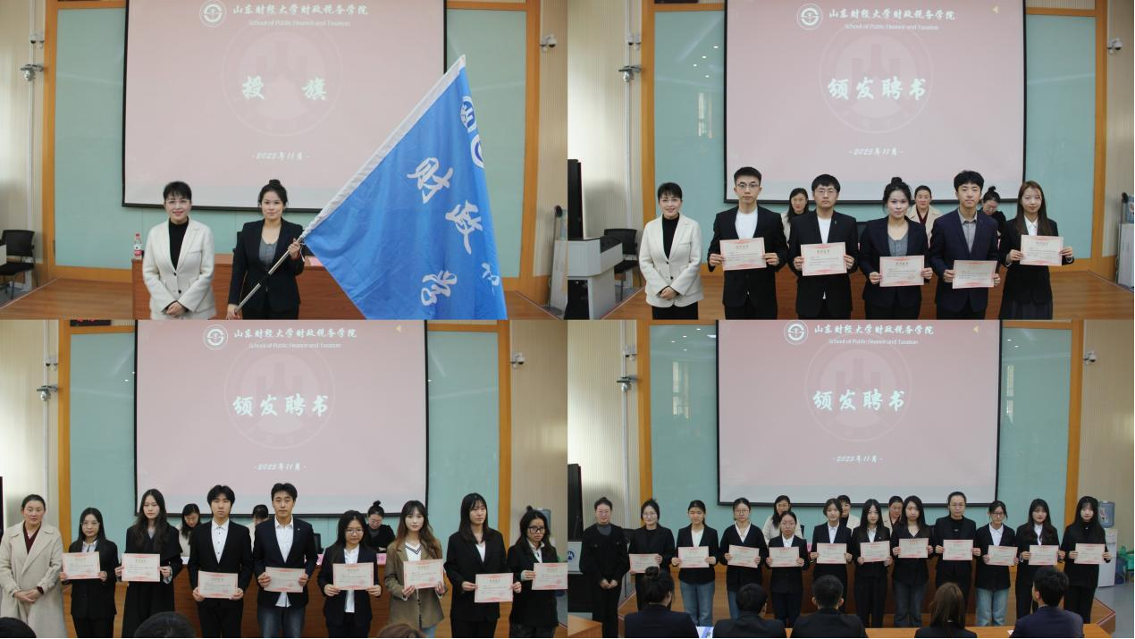 大会在庄严的国歌声中拉开帷幕。学工办主任李峻汝宣读了2025届学生会、学生成长服务中心主席团和部长名单,进一步明确了各部门职责与组织架构,为后续工作高效开展奠定坚实基础。授旗仪式上,滕晖向学生会主席李籽娴授旗,象征着学生工作的薪火相传与崭新征程的开启,激励新一届学生组织赓续奋斗精神,书写新的篇章。滕晖为2025届主席团成员颁发聘书,辅导员李峻汝、李昕鑫为各部门部长颁发聘书。一纸聘书,承载着信任与责任,也象征着使命与担当。