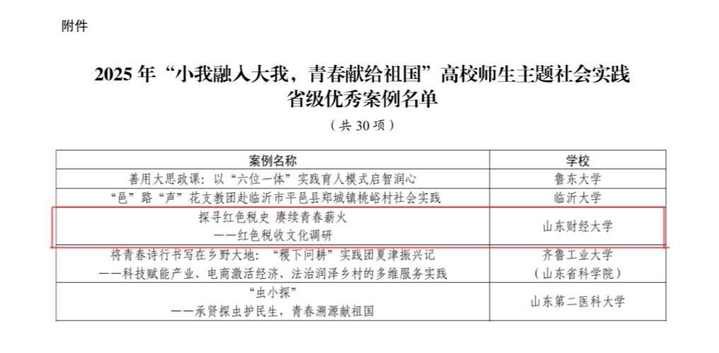 1月20日,山东省教育厅公布2025年“小我融入大我,青春献给祖国”高校师生主题社会实践省级优秀项目评选结果。愛影视