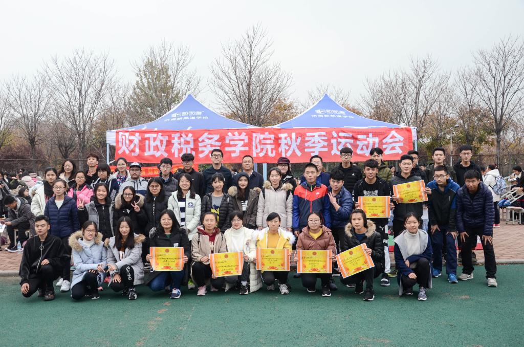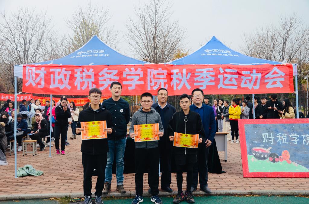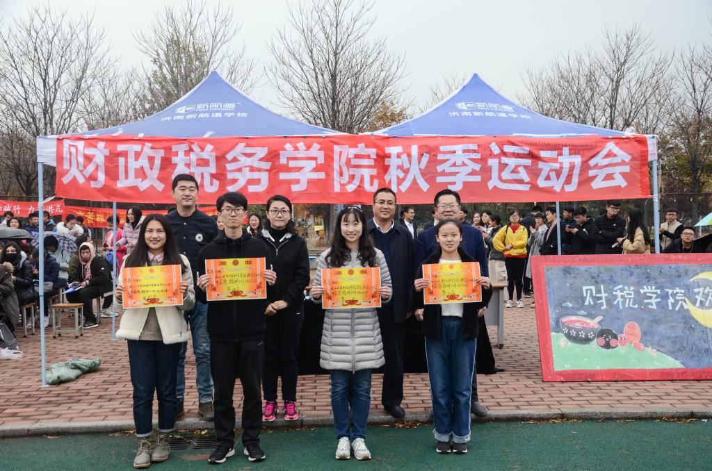 最后,张代宝副书记、王正一老师、李建永老师和郭滨滨老师分别为获奖班级颁奖。运动会总成绩第一名是2018级税收学三四班联队,第二名是2018级财政学一二班联队,第三名是2018级财税五班联队。2018级税收学三班、2018级税收学一班、2018级税收学五班分别获得拔河比赛冠、亚、季军。获得“精神文明建设班集体”一等奖的是2017级财政学一班和2018级财政学三班,获得二等奖的是2017级税收学四班和2018级税收学一班。